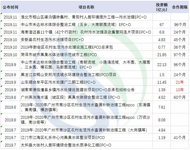 事實上,這只是EPCO類水環(huán)境項目的高光時刻,近期出現(xiàn)的同類項目已小有氣候,還有一波未開啟招標(biāo)的也正在趕來的路上。近期典型水環(huán)境EPCO項目如下表所示: