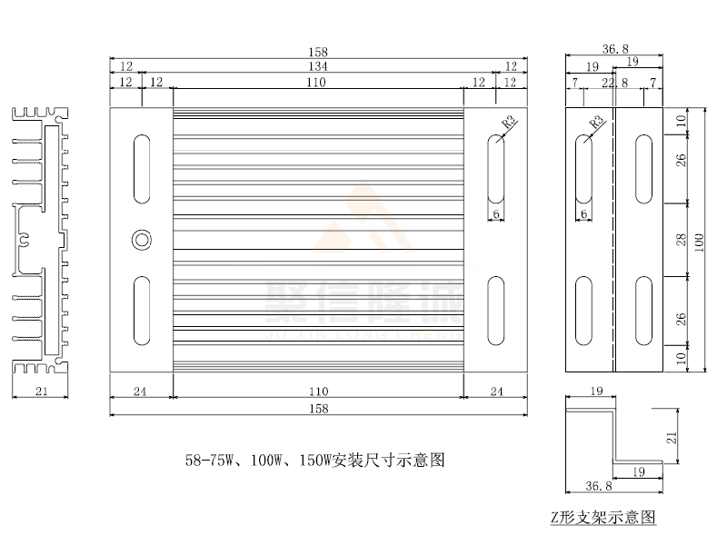 DJR-158□ 100W | AC220V | 100W±10% | 480Ω±10% | 鋁合金6063-T5 | 鎳鉻合金絲 |