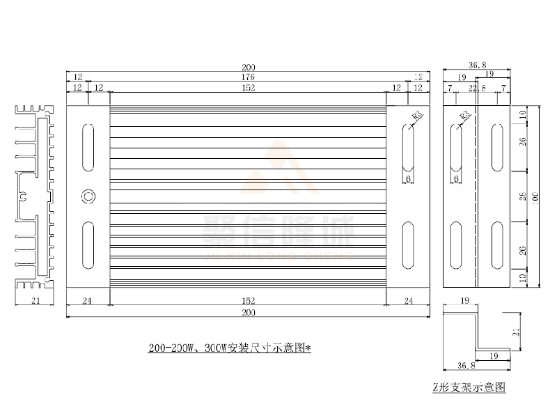 DJR-200□ 200W | AC220V | 200W±10% | 240Ω±10% | 鋁合金6063-T5 | 鎳鉻合金絲 |